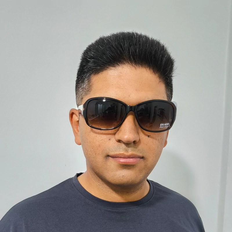 عینک افتابی شش ضلعی بدون فریم | عدسی دودی فشن از عینکه