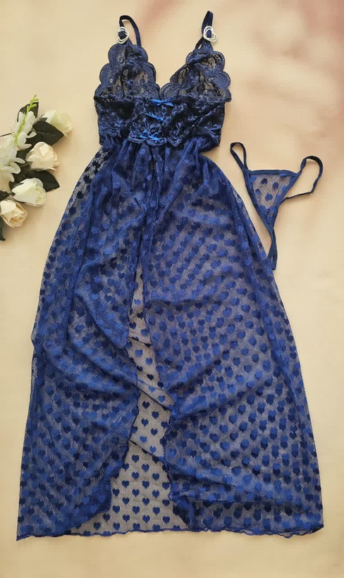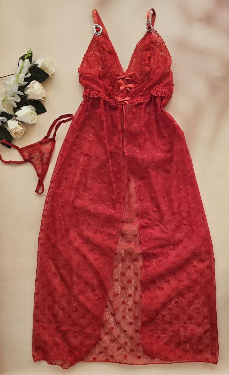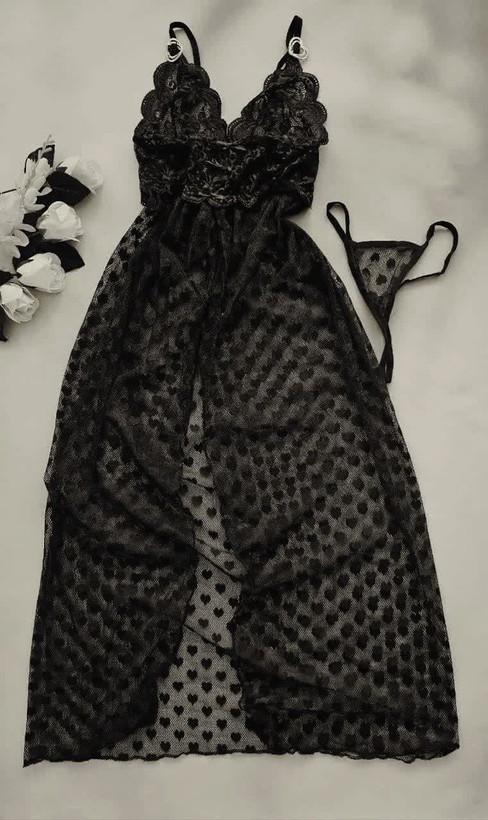 این همونه که خیلی وقته قولشو داده بودم لباس خواب بلند که روی سینه قلب داره و تنخورشو که ببینی دلت ضعف میره 🔥🔥🔥🔥👌