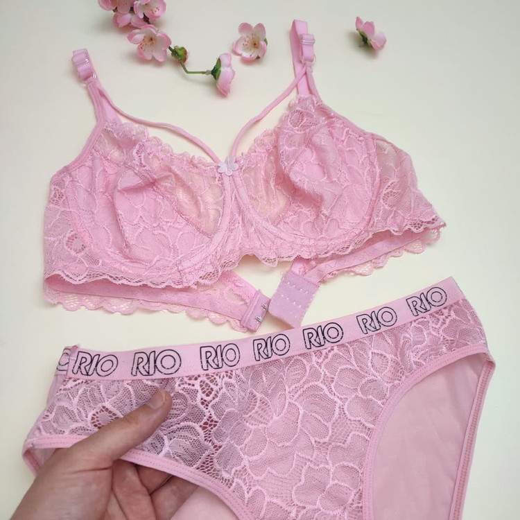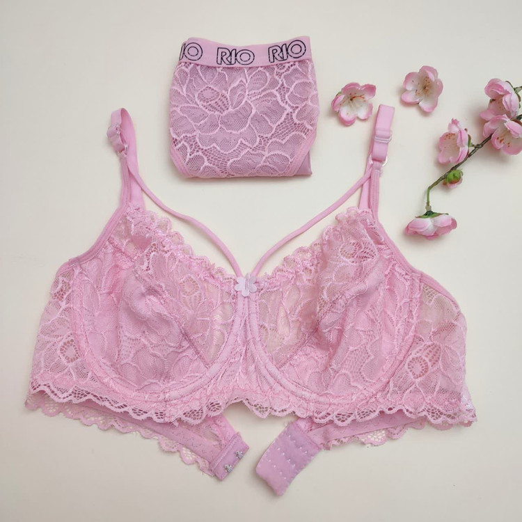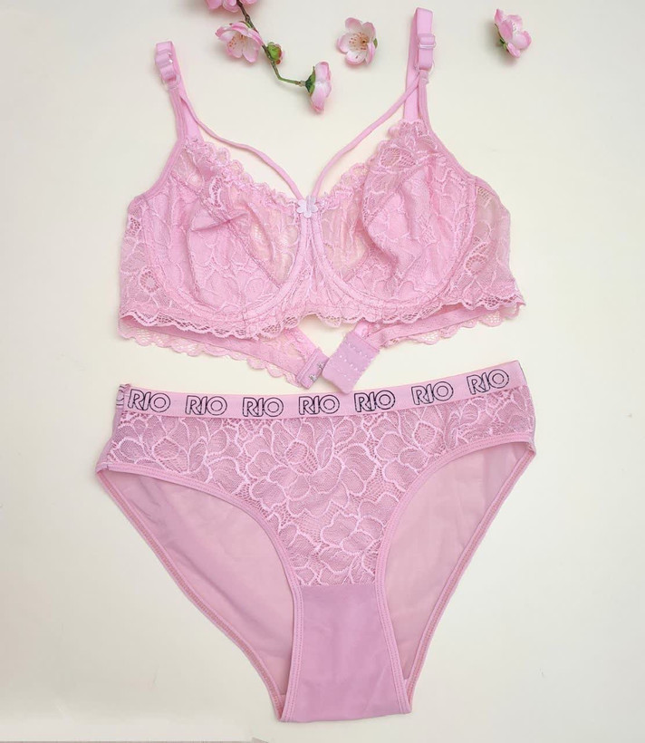 ست شورت و سوتین زیرفنردار دانتل صورتی