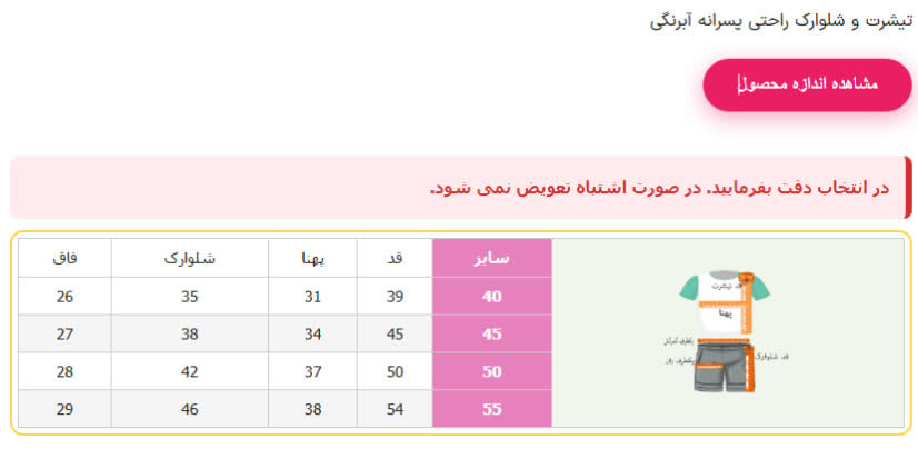 - سایز: 45 قد:45 پهنا:34 شلوارک:38 فاق:27